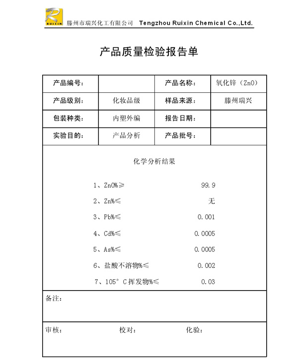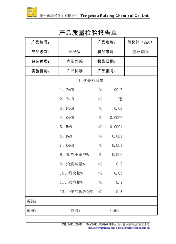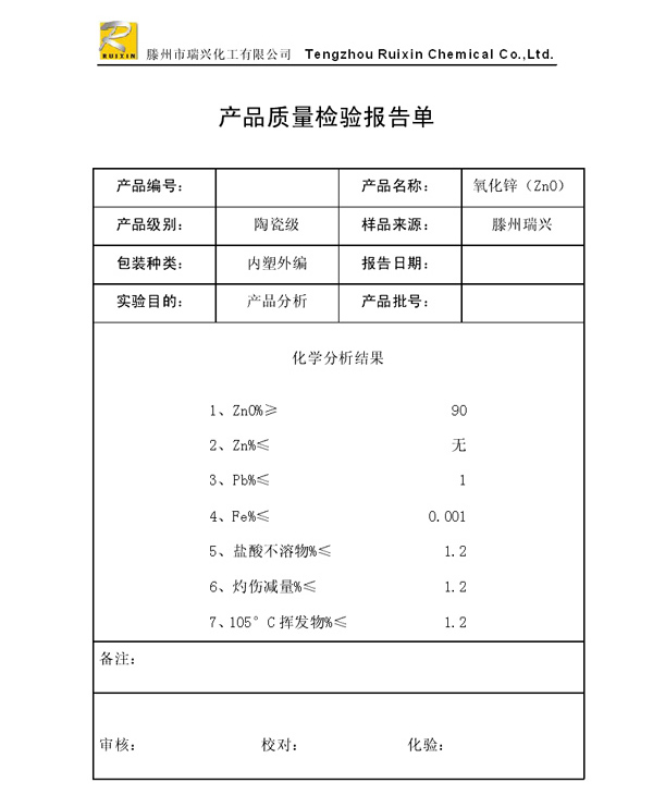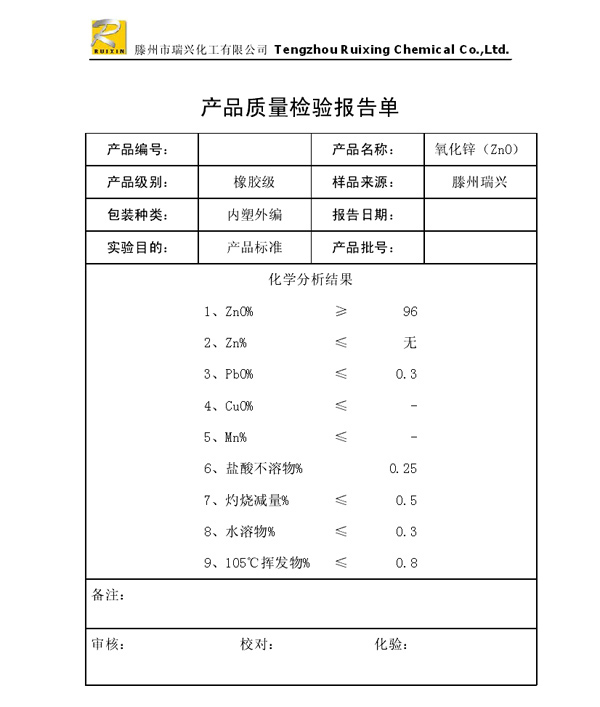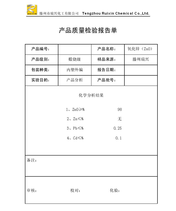 瑞興化工有限公司是生產(chǎn)氧化鋅的重點(diǎn)企業(yè),于2008年通過(guò)ISO9001:2008質(zhì)量管理體系認(rèn)證。“瑞興”牌氧化鋅在國(guó)內(nèi)擁有較大穩(wěn)定的市場(chǎng),并遠(yuǎn)銷東南亞、中東、中南美等國(guó)家和地區(qū),在國(guó)內(nèi)外享有較高聲譽(yù)。